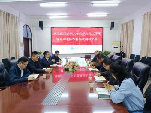 本网讯(通讯员 严静) 10月24日上午,武汉纺织大学化学与化工公司党委书记杜勇一行5人来院调研交流。公司党委书记杨海波,经理助理张林锋、吴风收,能源化学工程系主任陆小军,学院教务员严静参加会议,会议由副经理吴华东主持。