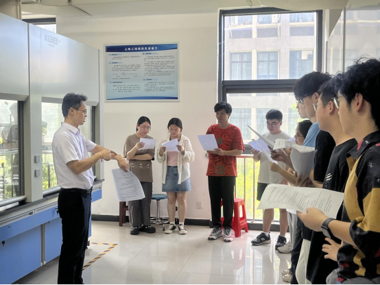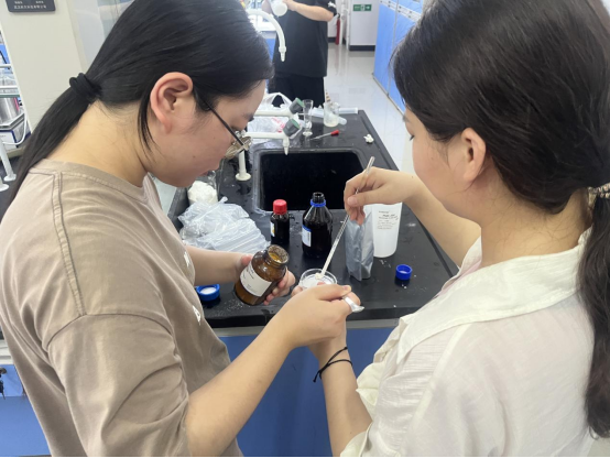 近日,中欧体育组织员工在精细化工实验室开展“玩转科学实验,自制无添加防晒霜”劳动教育实践活动,化学工程教研室主任张林锋教授为参加活动的员工讲解防晒霜制备原料及作用原理,同学们分组设计实验配方并自制了“专属”防晒霜。