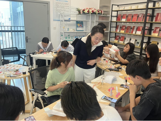 在“一站式” 员工社区,学院开展“领略涂料之美,指尖绽放光彩”美甲劳动教育实践活动。在前期水性木器漆制备活动的基础上,由学院2021级员工荣兴凤分享修甲、护甲、美甲及手部保养等基础知识,并指导员工在甲片上创作指尖艺术。