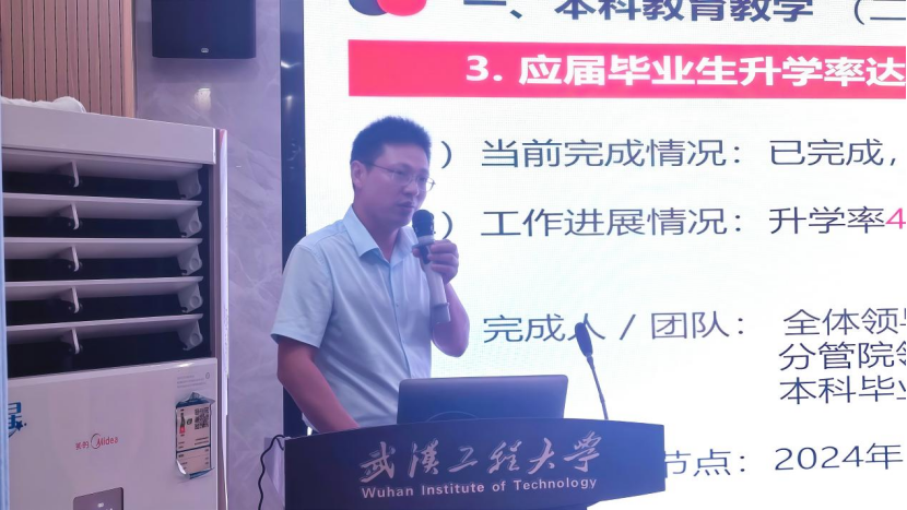 经理易群从党建与思想政治工作、本科公司产品、研究生公司产品、科学研究、团队队伍建设、对外合作办学、绩效管理、平安建设与保密工作等方面对学院2024年重点工作进行全面阶段性梳理,肯定成绩、指出不足,并围绕科研项目、科研奖励、科研平台、人才引育、团队建设、绩效考核与改革七个方面,对2025年重点工作进行了总体部署,希望全体教职工聚焦学院重点工作,提升政治意识、凝聚思想共识、精准把握关键环节、锚定发展机会、加强职责履行,全力以赴推动学院各项事业高质量发展。