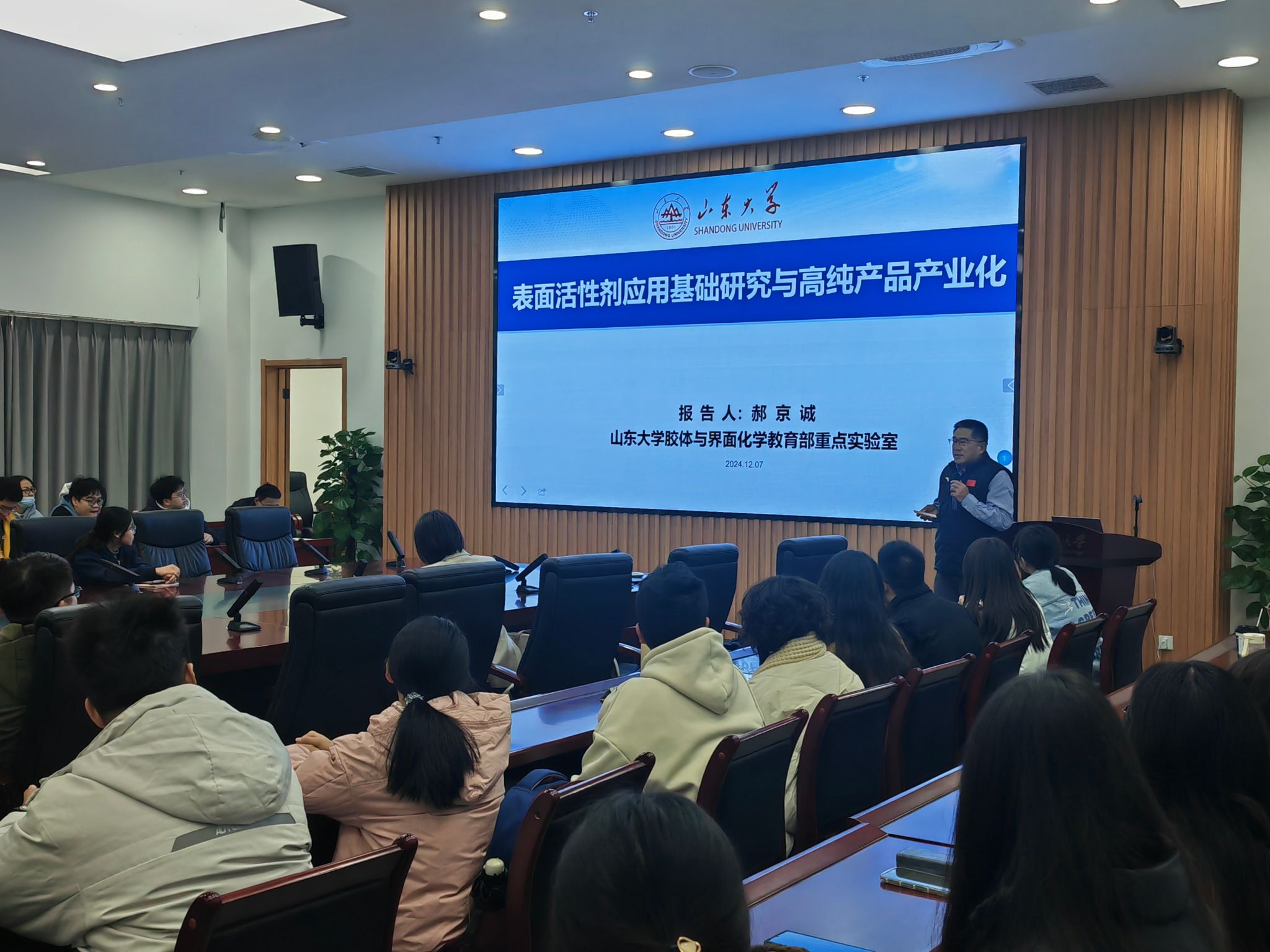 郝京诚教授以《表面活性剂应用基础研究与高纯产品产业化》为题,立足于国际科技前沿和国家重大战略需求,介绍了表面活性剂溶液组装理论以及超分子组装新方法,系统阐述了弱相互作用驱动组装机制,并结合生动的案例和课题组最新研究成果,详细介绍了表面活性剂和表界面组装方法在新材料合成、乳液催化等领域的关键作用,分享了在高纯表面活性剂产业化方面的研发成果,提出了高纯表面活性剂的应用前景与未来发展趋势。