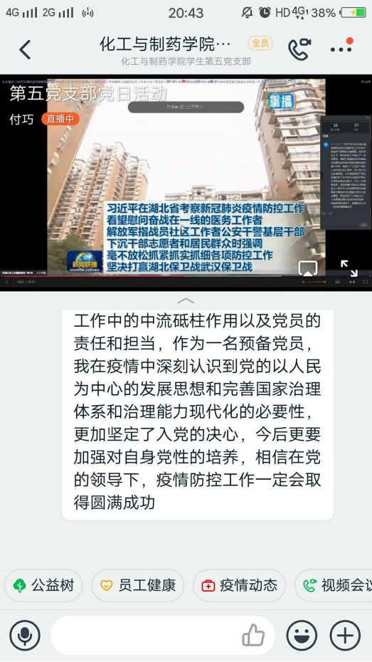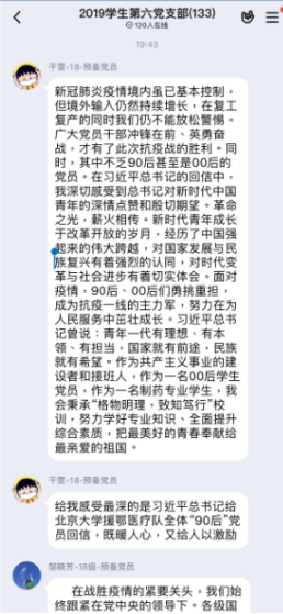 各党支部书记强调员工党员们在做好个人防护、坚决服从党组织安排的基础上,充分发挥好青年党员先锋模范作用,坚决贯彻落实党中央和学校、公司党委对疫情防控的部署要求,同时也提醒支部党员做好学业规划、扎实开展线上学习,疫情期间思想不掉队、学业不掉线。
