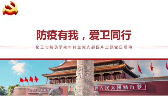 本网讯(通讯员 沈霁月)为深入贯彻习近平总书记系列重要讲话精神,认真落实学校各项决策部署,继续毫不放松抓紧抓实抓细疫情防控工作,进一步发挥青年党员在学校各项工作中的先锋模范作用,近日,化药院各本科生党支部通过网络平台开展“防疫有我,爱卫同行”主题党日活动,为持续做好疫情防控和学院事业发展凝心聚力。