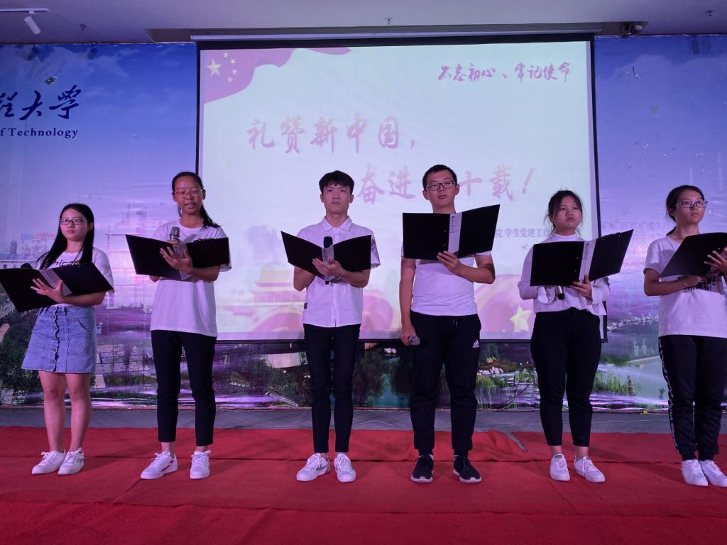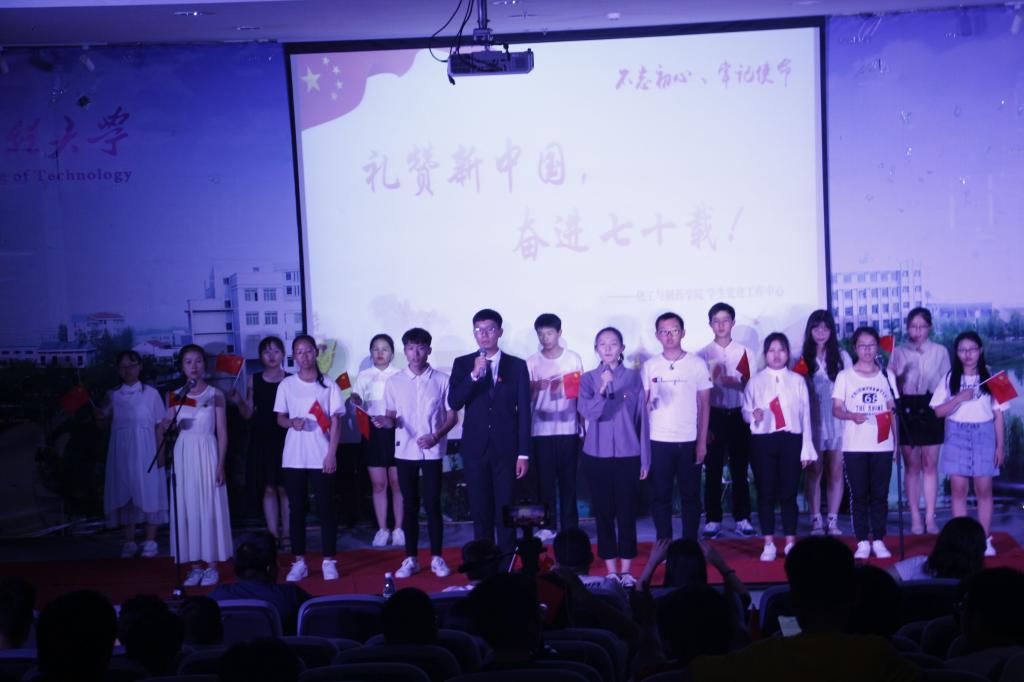 晚会最后,全体师生合唱《我爱你中国》,深情告白伟大的祖国、共同致敬伟大的新时代,师生和着节拍挥舞着手中的红旗,心潮澎湃,激情高歌,尽情释放和表达对祖国母亲的热爱与赞美。