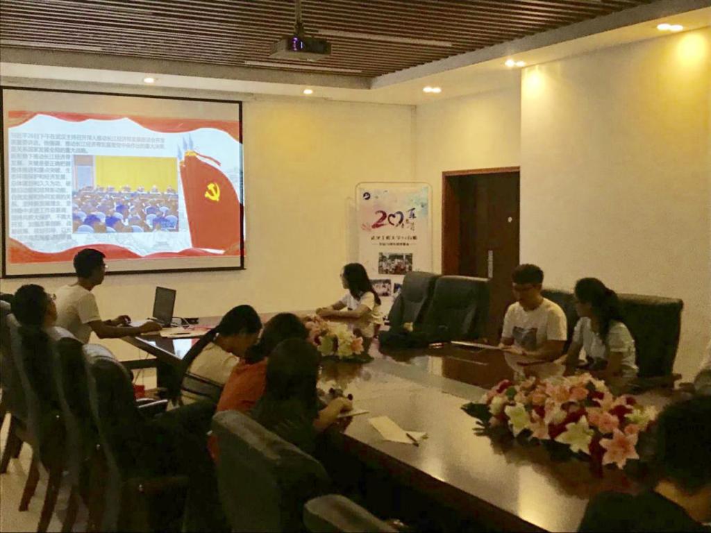 在学习环节,广大党员佩戴党徽,在党旗引领下,完成缴纳党费、奏唱国歌、重温入党誓词、诵读《党章》等规定动作后,各支部采取党员主题发言、轮流讲授微党课,集体观看视频,围绕主题学习讨论等多种形式开展党员主题党日活动,重点学习了习近平总书记视察湖北重要讲话精神、习近平总书记在全国宣传思想工作会议和全国组织工作会议上的讲话精神以及新时代全国高校本科教育工作会议精神和集团2018年暑期中层干部会议精神。