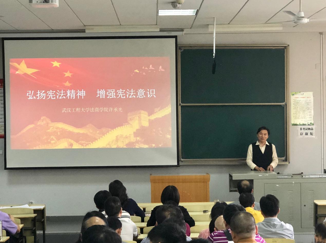 许承光教授以“弘扬宪法精神,增强宪法意识”为题,从“为什么要修宪”、“修宪的主要内容是什么”、“ 如何贯彻执行新修改的宪法”三个方面作了透彻的分析,他强调宪法是国家的根本法,是治国安邦的总章程,是党和人民意志的集中体现,具有最高的法律地位、法律权威、法律效力,此次修宪是党中央从新时代坚持和发展中国特色社会主义全局和战略高度作出的重大决策,是推进全面依法治国、推进国家治理体系和治理能力现代化的重大举措,是党领导人民建设中国特色社会主义实践发展的必然要求。他指出,宪法的生命在于实施,宪法的权威也在于实施。不仅要通过完备的法律规范体系推动宪法实施,也要加强完善备案审查制度,维护法制统一。报告内容详实,分析透彻,语言生动,深入浅出,为大家进一步理解把握、贯彻执行《宪法》和《监察法》提供了重要指导。