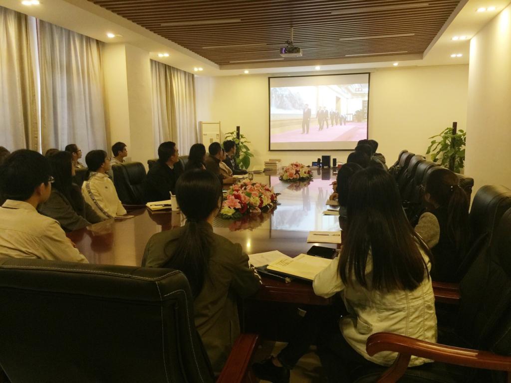2017年10月25日上午,党的十九届中央政治局常委同中外记者见面,化药公司党委书记王雪梅、副书记田勇、师生党员通过视频直播观看了记者见面会。
