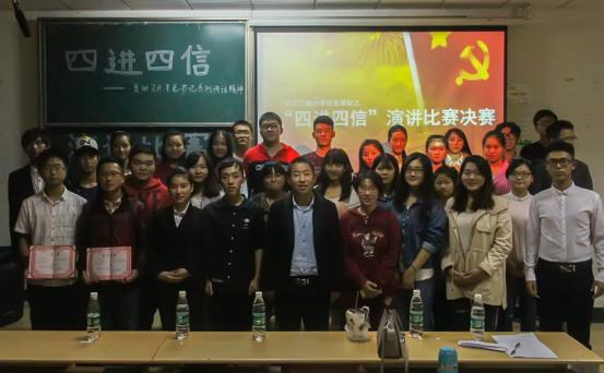 为加强思想政治引领工作,深入贯彻落实习近平总书记系列重要讲话精神,10月16日晚,由化药院团学联主办的“四进四信”演讲比赛总决赛在流芳校区L2105成功举行。