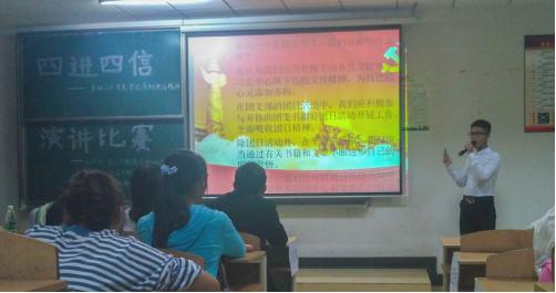 在决赛过程中,参赛选手一律采用脱稿方式并配合PPT演讲,十七名演讲者从不同角度,阐述了什么是“四进四信”,为什么要开展“四进四信活动”进支部,并引经据典,用鲜活的事例宣扬习近平总书记系列重要讲话精神“进支部、进社团、进网络、进团课”能帮助广大青年员工和高校团学干部进一步牢固树立对党的科学理论的信仰、坚定走中国特色社会主义道路实现“中国梦”的信念、增强对党和政府的信任、增进对以习近平同志为总书记的党中央的信赖。选手们慷慨激昂的演讲,加深了青少年对“四进四信”精神的理解,将“四进四信”精神传递给在场的所有观众并不断弘扬。