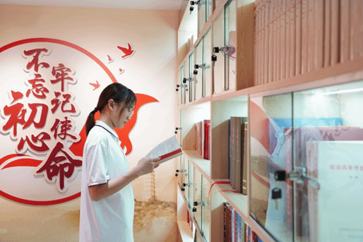 22日下午,实践团成员来到南漳县党史馆,在解说员的引导下,参观了“红色热土”——南漳县百年党史文献展,实地接受了百年党史学习教育。
