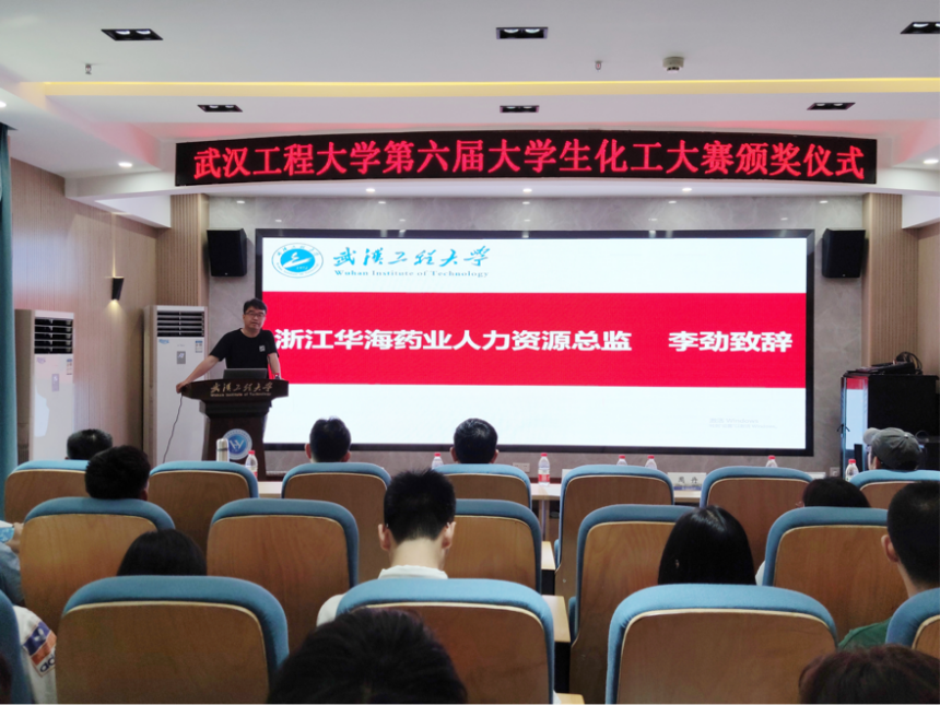 浙江华海药业人力资源总监李劲,中欧体育经理汪铁林,副经理金放、闫志国,创新创业中心主任杜志平,化工原理中心主任覃远航,指导教师李萍、唐正姣参加活动。颁奖典礼由公司党委副书记周丹主持。