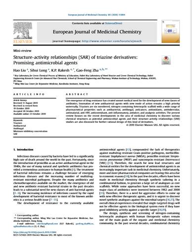 2.H. Liu, S. Long, K. P.Rakesh, G. Zha, Structure-Activity Relationships (SAR) of Triazine Derivatives:Promising Antimicrobial Agents,Eur. J. Med. Chem.DOI:10.1016/j.ejmech.2019.111804.