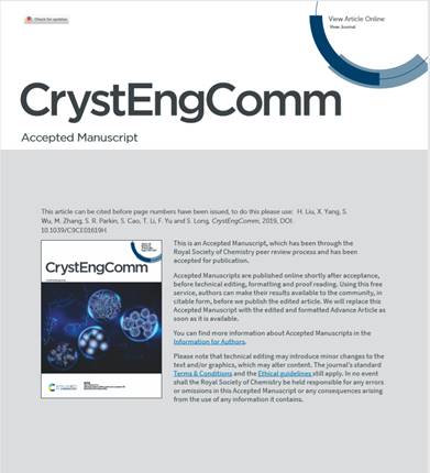 3.H. Liu, X. Yang, S. Wu, M.Zhang, S. R. Parkin, S. Cao, T. Li, F. Yu, S. Long, An Investigation of thePolymorphism of a Potent Nonsteroidal Anti-inflammatory Drug Flunixin,CrystEngComm,DOI: 10.1039/C9CE01619H.