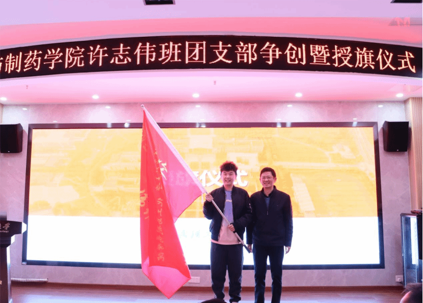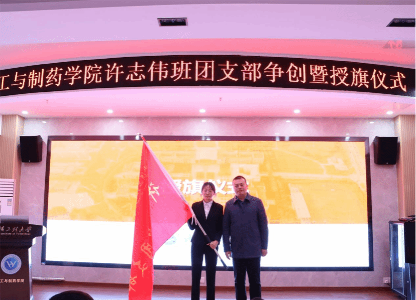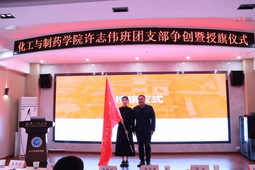 党委学工部部长吕容涛、校团委副书记邓欢、公司党委书记汪铁林为第二期许志伟班团支部授旗。