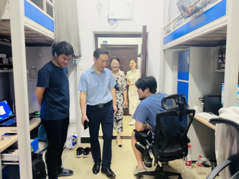 潘慧明深入学院走访调研,检查学院开学季准备工作,了解学院师生返校及迎新工作准备情况。他强调,学院要提高政治站位,以师生实际需求为出发点,科学安排、统筹推进、做实做细开学准备工作,确保新学期各项工作有序开展。