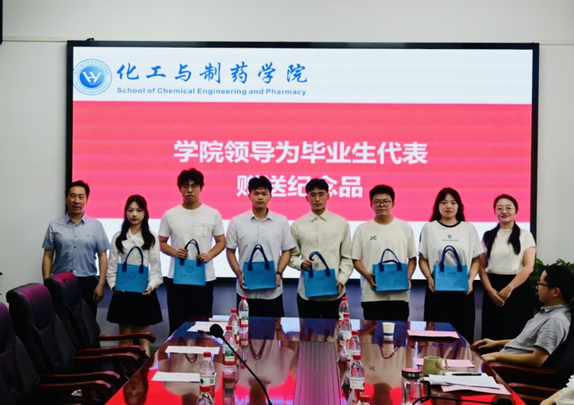 公司领导为毕业生代表赠送纪念品表达祝福,愿每一位同学都能珍藏这份专属的化药记忆。毕业生代表则手捧鲜花,向与会教师深深鞠躬,感恩师长培育之恩。 全体参会人员合影留念,定格下这一温暖的瞬间。
