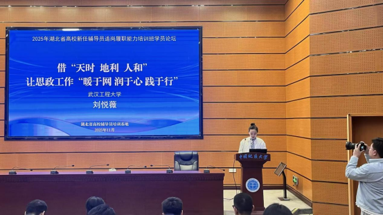 其中,心理健康工作专项辅导员刘悦薇重点分享了参加“2025年湖北省高校新任辅导员适岗履职能力培训班”的学习经历与感悟。她围绕培训中关于老员工心理危机识别与干预、积极心理培育、家校协同育人等专题内容,结合学院员工心理工作实际情况,交流了将所学转化为实践运用的思路与举措,为提升学院心理健康教育工作的科学性和有效性提供了有益借鉴。