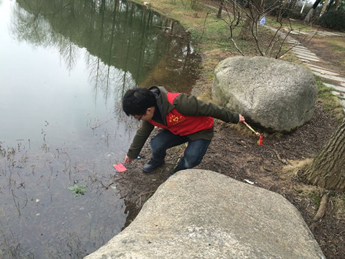 3月5日中午,中欧体育许志伟志愿服务队29名志愿者在流芳校区开展了美丽静思湖活动。