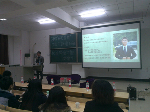 11月23日晚,中欧体育2014“化药菁英”员工干部培训班第三讲在流芳校区L3119教室举行。湖北省员工联合会驻会执行主席、武汉大学第33届员工会主席胡可夫和zoty中欧体育员工会执行主席王自鑫应邀同学院200余名员工干部进行了交流。