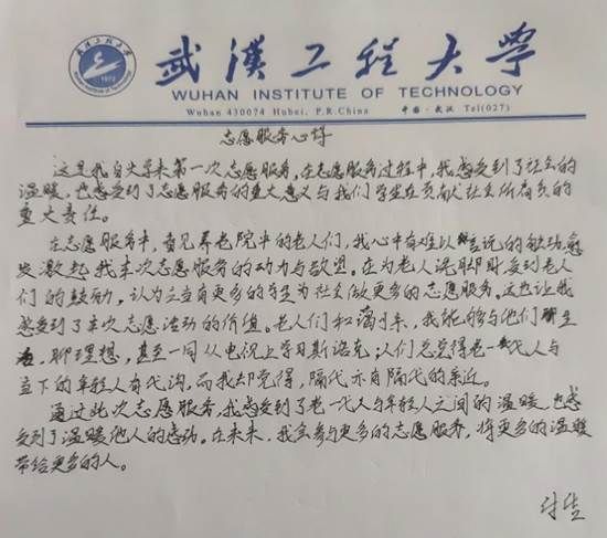 一天的志愿服务结束后,瑞康养老护理中心经理亲自面见付佶同学,并夸赞他是自己所见过最勤劳能干的员工,也希望以后能有更多的青年人重视老人并投入关心关爱老人的工作中。