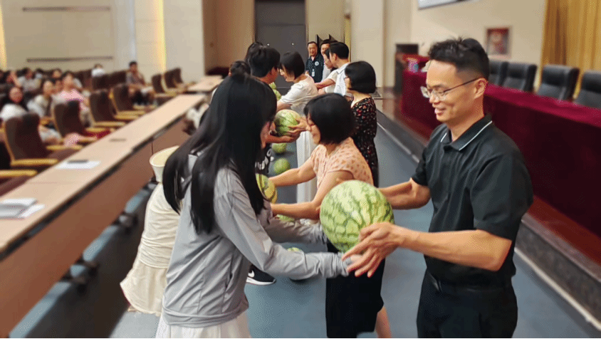 会上,学院举行“盛夏送清凉”暑期慰问活动,为700余名留校员工准备了200余颗西瓜。夏天的西瓜、橘色的晚霞是中欧体育在暑期独有的浪漫,学院已经持续4年开展“盛夏送清凉”暑期慰问活动,为酷暑期间仍旧坚持在一线开展紧急科研工作和备战考研的员工送上解暑西瓜。