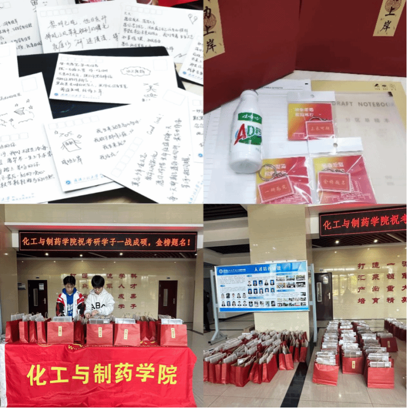 在这个充满希望与挑战的季节里,随着考研倒计时的指针悄然迈向最后30天,每一位怀揣梦想的考研学子都站在了人生的重要转折点上。为鼓舞士气,传递温暖,11月28日下午,公司党委书记杨海波、党委副书记周丹,副经理余响林、古双喜、吴华东,经理助理吴风收及学院辅导员在大化工楼一楼大厅慰问备战考研的2021级化药学子。为每一位辛勤备战的学子送上了精心准备的“考研大礼包”,用实际行动表达对大家深切的关怀与期待。