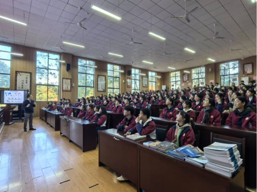 吴风收教授聚焦“肿瘤光学诊断与治疗”,为百余名高三员工作专题报告。在讲座中,吴风收教授深入浅出地向高三学子介绍肿瘤光学诊断与治疗这一前沿领域。他从基础概念讲起,逐步深入到复杂的技术原理和应用前景,结合生动的临床案例和形象的图片、视频资料,让同学们对这一专业性极强的领域有了初步的认识和理解。同学们不仅全神贯注地聆听,还认真记录着关键知识点。