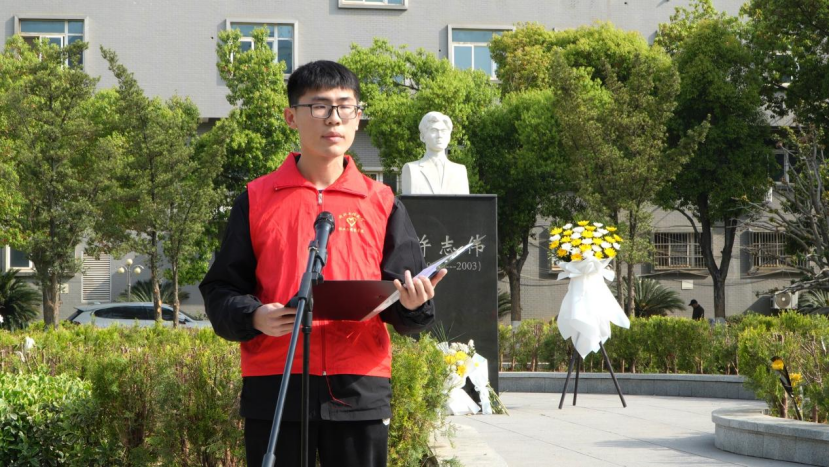员工代表赖闽韬分享了自己在许志伟志愿服务队的点滴,他倡议同学们要以更坚定的信念、更扎实的行动,让许志伟精神在服务国家、奉献社会的实践中绽放新的光芒!