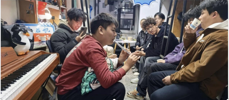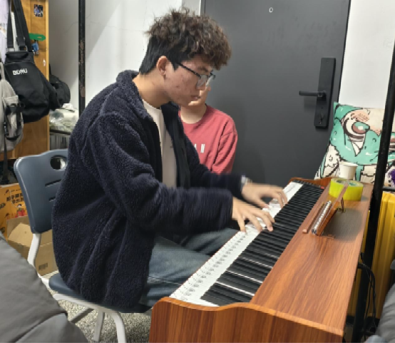 活动尾声,宿舍学子黄宇石、勾禹淞携钢琴与竖笛登台,悠扬旋律缓缓流淌。师生闻声围聚,驻足倾听。
