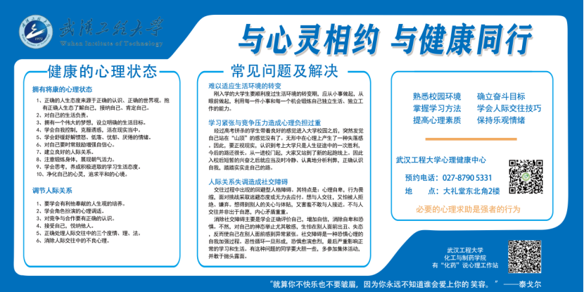 创新宣传方式,营造良好氛围。有“化”“药”说心理工作站广泛利用线上线下宣传平台,通过制作展板、电子宣传标语等方式宣传心理健康知识,营造积极向上、理性平和的健康氛围。