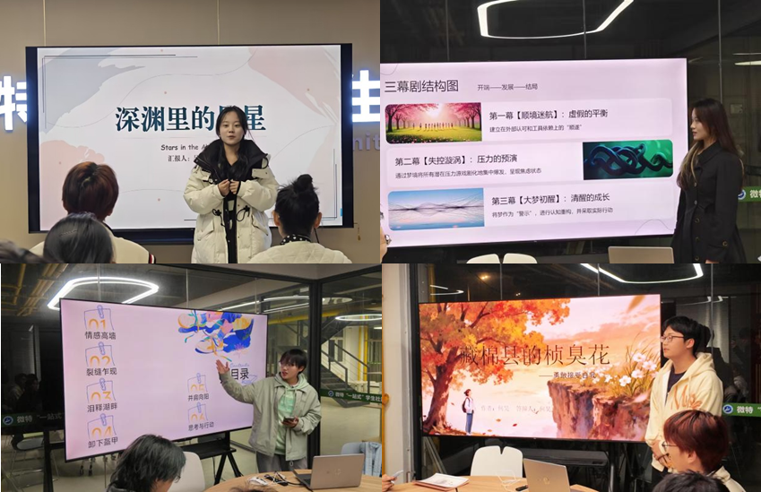 本次大赛历经个人报名、班级推荐、初赛筛选,共有4支队伍晋级院级决赛,决赛采用PPT答辩形式。晋级作品分别为:2025级化学工程与工艺(辅修英语)01班《深渊里的星星》、2025级化学工程与工艺(中外合作办学)01班《当迷茫撞上清醒》、2025级化学工程与工艺03班《铠甲之下,心有软肋》、2025级制药工程02班《藏棉县的桢臭花》。选手们准备充分,表达流畅,从心理情景剧剧本创作背景、剧情架构、人物设定及心理内涵等方面进行汇报,为现场观众呈现了一场兼具思想深度与表达张力的创意盛宴。