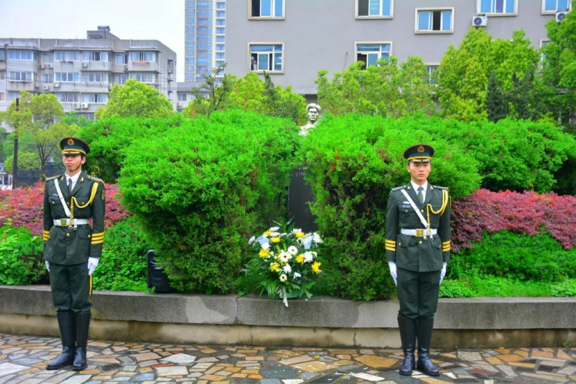 师生集聚许志伟纪念广场,怀着最崇高的敬意,深切缅怀烈士许志伟。庄严的乐声奏起,训练有素、步伐坚定的国旗护卫队缓步走来,为烈士许志伟同志敬献花篮。​公司党委副书记周丹和材料公司党委副书记张琼上前为烈士许志伟整理挽联,并深鞠躬以致敬。