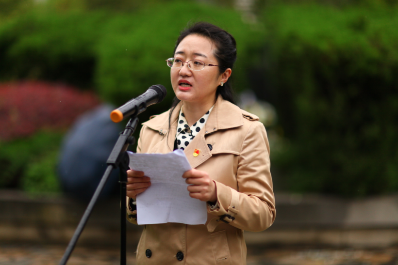 许志伟志愿服务队成员田永奇作为员工代表分享扫墓活动心得体会,他代表全体同学表达对许志伟同志追思之情,同时也表示会继续传承许志伟同志信仰坚定、乐于助人的奉献精神,朴实无华、勤俭节约的奋斗精神,不忘入党初心、践行青年使命,以坚强的意志、积极的态度,投入到学习生活中去,争做新时代有为青年。
