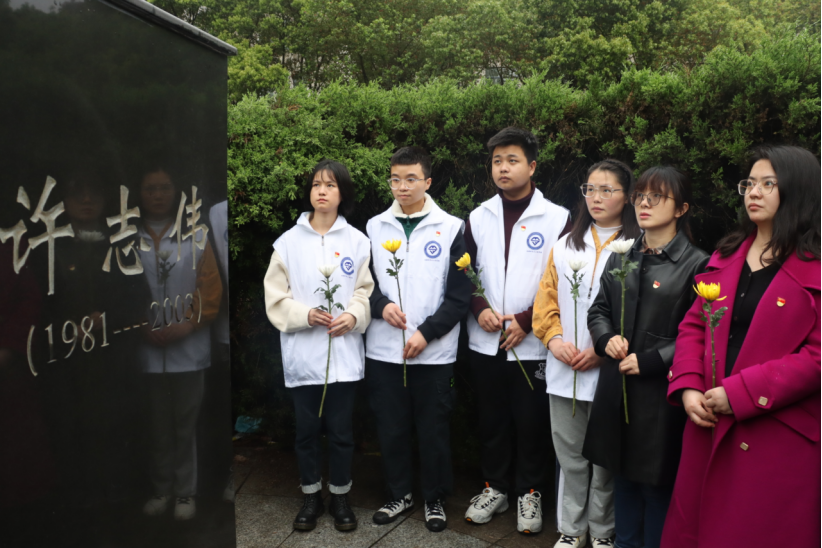 一束鲜花、一份哀思、一份敬仰。全体师生一一向许志伟纪念雕像敬献鲜花,瞻仰雕像,深切缅怀。