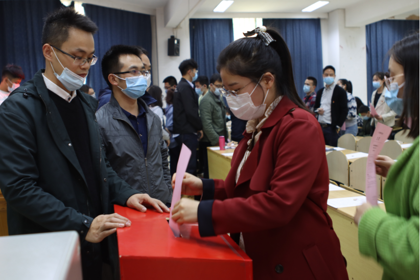 计票期间,全体党员师生共同观看了《同心抗疫——人民至上》纪录片。