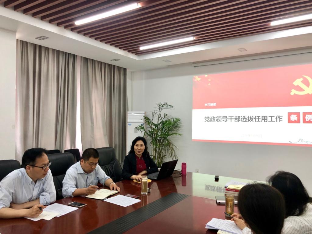 王雪梅就新修订的《党政领导干部选拔任用工作条例》做专题党课。对《条例》出台的背景、内容结构、原则规定、选任条件、选任程序等做详细的解读,她强调《条例》是党的干部工作的“法典”,是做好干部选拔任用工作的基本遵循,对于进一步推进干部选拔工作制度化、规范化、科学化具有重要意义,全体党员干部要全面把握条例精神实质,了解、熟悉、掌握规定要求,深入开展新条例的学习宣传。