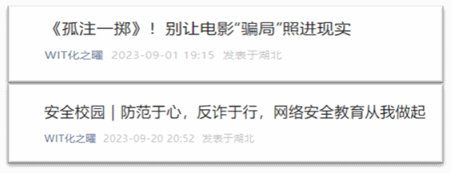 开学以来,学院认真响应湖北省教育厅、湖北省地方金融监督管理局《关于开展防范非法校园贷和电信网络诈骗教育的提示》和zoty中欧体育关心下一代委员会《关于开展“老员工国防、安全、心理健康教育” 公益大讲堂活动的通知》的号召,广泛宣传反诈知识和积极动员员工参与创作反诈网络文化作品,发布网络安全、反诈教育相关推文,引导全院员工学习“星空班会——五个电话(2023版)”和“小心 ‘炸弹’ —— 校园版 ‘孤注一掷’ ”网络小课堂,收到学习截屏540余张,公益大讲堂线上课程累计观看7300余次,组织召开线下主题教育班会40余场,收取以班级为单位的学习心得40余份,激励员工拍摄反诈相关情景剧作品9部,其中,《防诈超重要》反诈宣传视频在抖音播放量达4.3万。