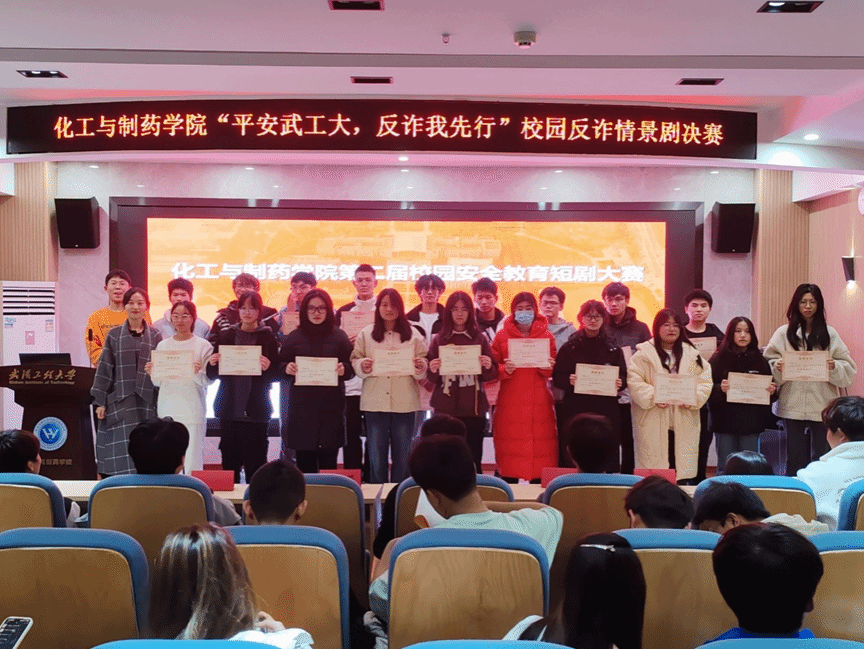 参与现场演出的班级共5个,其中2023级中外2班的《骗无可逃》获得一等奖,2023级化工2班的《孤注一掷武工大版》、2023级中外3班的《购物陷阱》和2023级能化1班《七夕的秘密》获得二等奖,2021级药剂2班的《AI 拟声,以假乱真》获得三等奖。2023级化工1班、2023级能化2班、2023级中外1班、2023级化工5班等四部网络作品同获三等奖。周开瑞等21人荣获“反诈教育课堂”优秀组织个人。