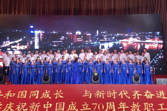 为迎接新中国成立70周年,展现公司教职工爱岗敬业、立足本职、团结奉献、健康向上的精神风貌,引领广大教职工以崭新的精神状态和一流的工作业绩向70华诞献礼,6月18日下午,公司“庆祝新中国成立七十周年教职工文艺汇演”在流芳校区大礼堂隆重举行。本次文艺汇演以“与共和国同成长、与新时代齐奋进”为主题,充分展示广大教职工政治坚定、昂扬向上的精神风貌,大力倡导劳动光荣、职工伟大的时代主旋律,为庆祝新中国成立70周年营造良好氛围、凝聚强大正能量。全校各院(部)、各单位选送了与主题相关的22个文艺节目参加文艺汇演,公司演出的节目——大合唱《歌唱祖》、《我和我的祖国》荣获二等奖。