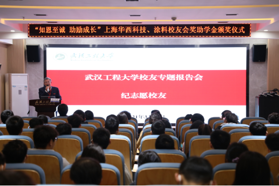 报告环节中,纪志愿员工分享了自身求学经历、创业故事、行业发展、设立奖学金的初衷和对母校的感恩之情,为同学讲述一堂生动的专业认同、行业认知教育课,提高员工对专业深入认识,希望工大学子不受家庭经济负担等因素影响,能专心完成学业,珍惜时光,努力汲取知识,释放光彩。