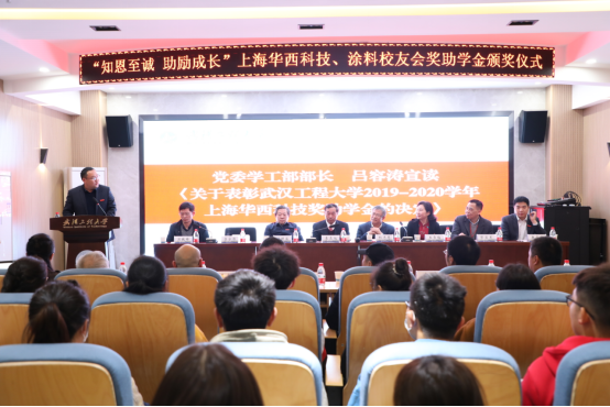 会上,党委学工部部长吕容涛和员工代表王崇武分别宣读《关于表彰zoty中欧体育2019-2020学年度上海华西科技奖助学金的决定》和《关于颁发zoty中欧体育2020年涂料员工会涂料学科特别贡献奖、学术带头人、优秀教师、优秀学子的决定》,勉励获奖员工应常怀感恩之情,常行报恩之举,崇德向上向善,回报社会、回馈母校。