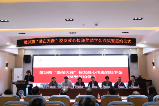 公司党委副书记郑丹凤在致辞中代表公司党委、校行政对“爱在天涯”设奖员工表示由衷的敬意和真诚的感谢。她指出,此奖项由爱心员工于1998年发起,已连续设奖23年、累计发放善款120余万元,帮助近440余名工大学子圆梦。员工们不辞辛劳,从全国各地返校评审并亲切慰问,他们坚守育人初心、坚持回报母校、坚定爱心助学,共同托起员工的梦想。他们引导广大师生树立爱党、爱国、爱校意识,激励着全校师生团结奋进、抢抓机遇为学校的发展取得进一步突破和提升而不懈努力。