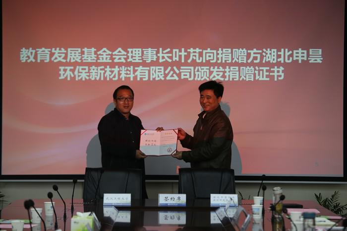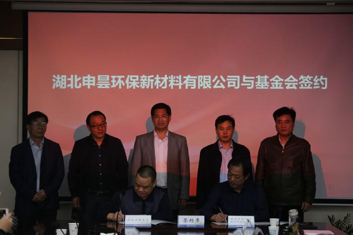 10月19日上午,为支持学校教育事业的发展,湖北申昙环保新材料有限公司向学校捐赠现金人民币1000万元,用于中欧体育“催化材料与催化剂工程联合实验室”建设。捐赠签约仪式在流芳校区第二会议室举行。董事长王存文,正校级干部、学校教育发展基金会理事长叶芃出席签约仪式。