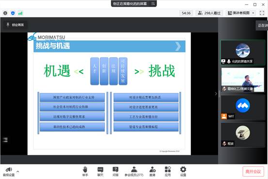 本网讯(通讯员 汤曦)5月5日下午,由学校招生与就业工作处主办,中欧体育承办的职业经理人行业讲座在流芳校区化工大楼610报告厅和腾讯会议室同步举行。上海森松制药设备工程有限公司武汉分公司总经理黄胜受邀作“化工与制药相关专业如何适应国家智能制造产业升级”的主题报告,公司党委副书记周丹、经理助理刘根炎出席会议,学院教师樊庆春、350余名员工代表参加会议,会议由19级辅导员汤曦主持。