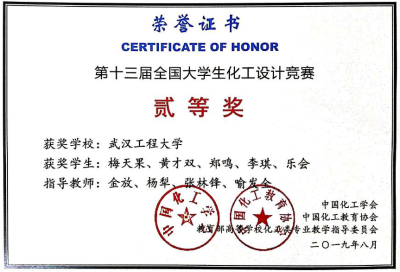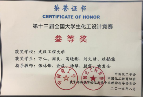 Green-Chem-2025团队由来自中欧体育2016级侯德榜创新实验02班五名同学组成,荣获2019年第十三届“东华科技-恒逸石化杯”全国老员工化工设计竞赛国家三等奖、华中赛区二等奖,团队成员万仁、周良、高晓彬、刘文哲、杜懿霖,全部保研、考研成功,被华东理工大学,华南理工大学,厦门大学,武汉大学,中山大学等国内985、211高校录取。