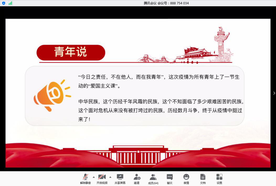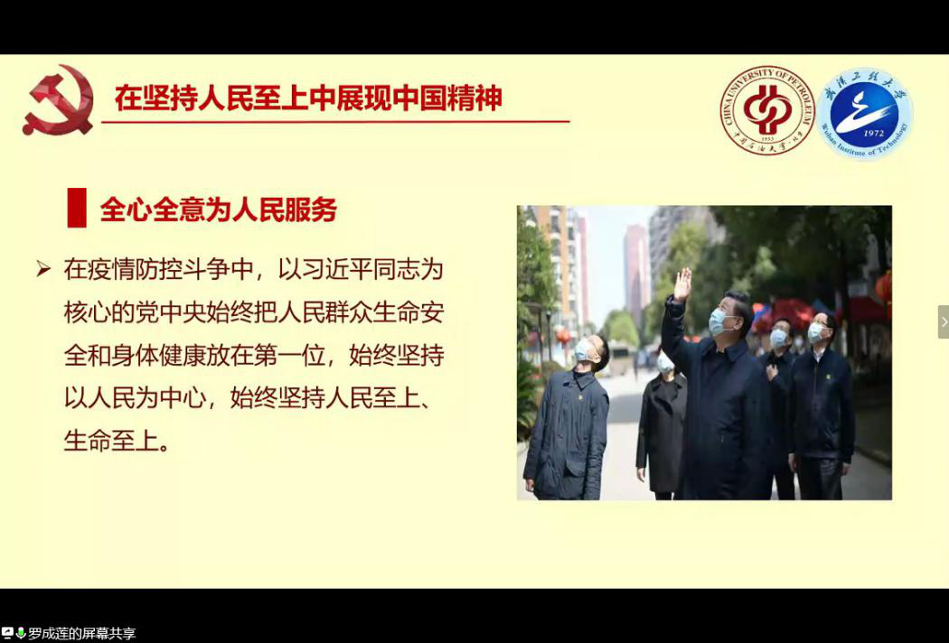 “在这次疫情之中,我被冲锋在一线的共产党员他们无私奉献的精神所震撼,这更坚定了我入党的初心”“国家从各个层面多措并举,加强就业帮扶,同时出台多项政策,向毕业生倾斜,我感到安心”,工大中欧体育的刘宇、刘正、李赛宽三名员工党员代表从自身出发,结合入党初心、疫情中的学习、毕业生就业考研等方面展开讨论,分享了自己的感受。来自石大的员工代表宋世龙讲述了自己作为青年员工党员,对于战“疫”与爱国的理解,诠释了新时代老员工的担当与责任。