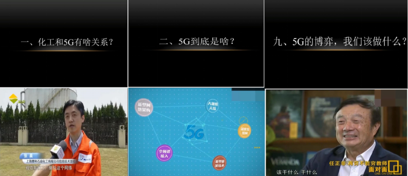 此外,《5G的博弈》的教学采用视频剪辑的方式,所涉及视频包括国内外关于5G技术的科普,以及相关的新闻报道和媒体人评述等。教师通过旁白设计,将各类视频有逻辑地串联在一起。以化工与5G的关系为切入点逐步展开,深入解读了美国打压华为事件的始末,突显科技强国的重要性,激发员工的爱国热情。