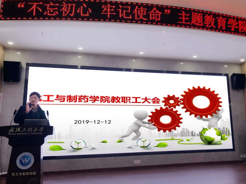 汪铁林对学院2019年团队建设、研究生教育、科研情况、团队队伍建设取得的成果和存在的问题进行了分析和总结,传达了学校绩效工资改革方案精神,同时,对学院2020年重点工作提出具体要求。汪铁林指出,全院师生员工要始终围绕学院“打造一流学科、汇聚领军人才、产出重大成果、培育精英学子”的办学理念,凝聚集体力量,勤练内功、夯实基础,以实干展现化药人新作为。