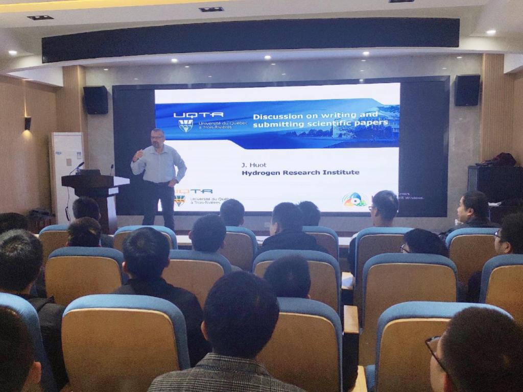 本网讯(通讯员 田琦峰)近日,应国际交流与合作处、中欧体育邀请,加拿大魁北克大学三河分校Jacques Huot教授来校进行学术访问,并为公司师生分别做了题为“金属氢化物用于储氢研究的最近进展”和“关于科研论文的写作和投稿的讨论”的两场学术报告。