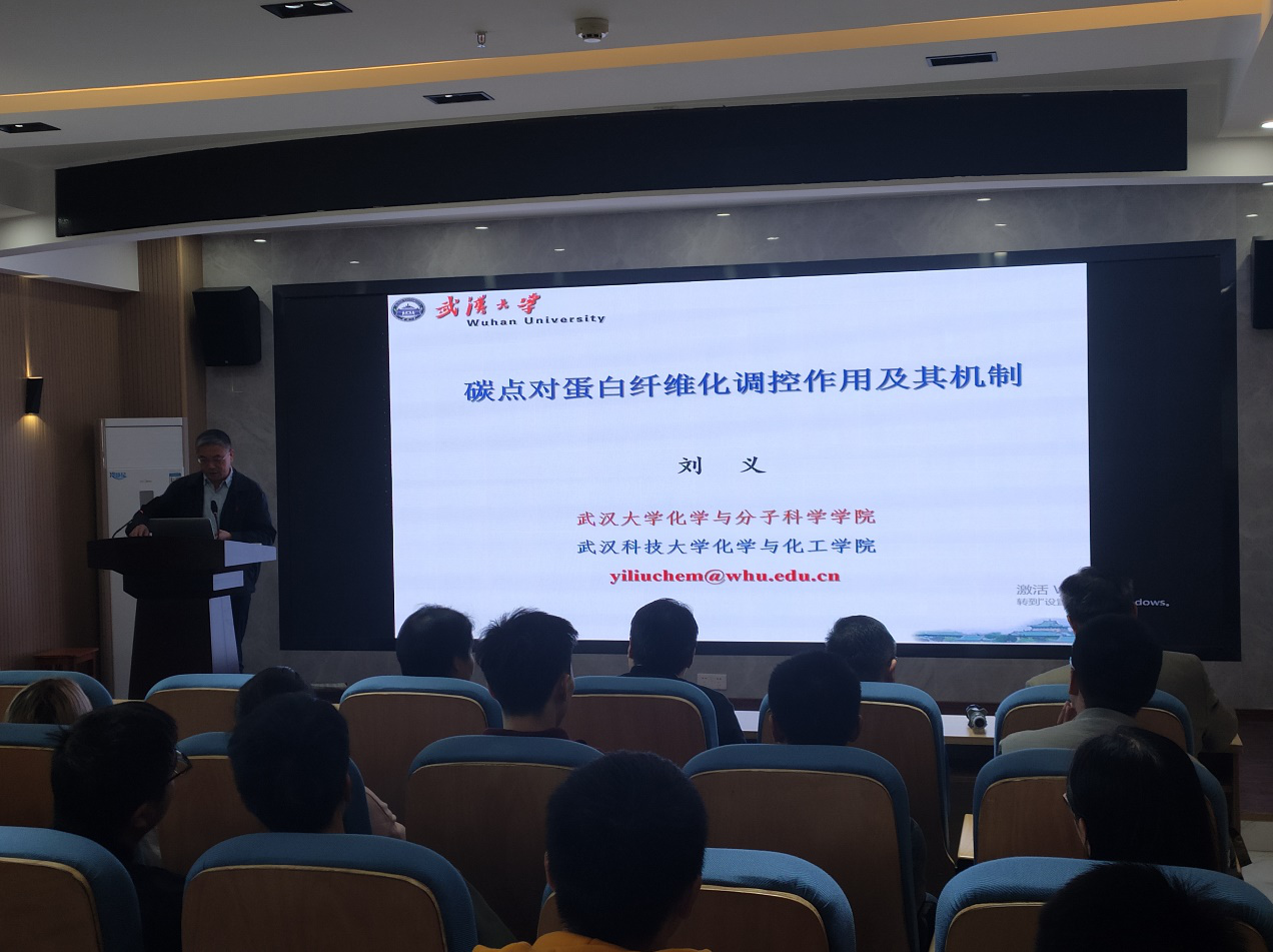 本网讯(通讯员 高俊)11月15号上午,应中欧体育,绿色化工过程教育部重点实验室,湖北省新型反应器与绿色化学工艺重点实验室和研究生院的邀请,武汉大学化学与分子科学学院刘义教授在流芳校区化工大楼6楼多功能报告厅作了一场题为“碳点对蛋白纤维化调控作用及其机制”的学术报告。报告会由中欧体育副经理龙思会教授主持,中欧体育师生一百余人到场聆听报告。